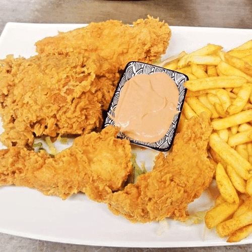 Komm mit deinem Freund und genieße 3 knusprige Hähnchenteile, 3 würzigem Wings , 3 leckerem Tenders unsere unwiderstehliche Coleslaw und einen großen Pommes mit Cocktail Sauce. Macht mehr Spaß wie allein zu gönnen. Worauf wartest du...